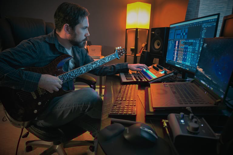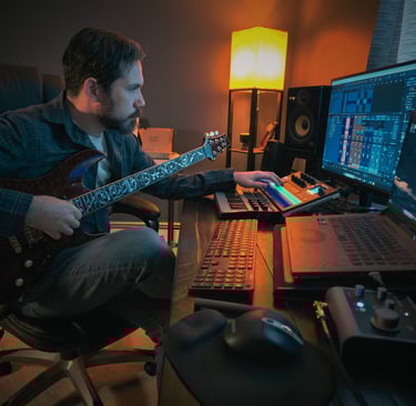 My background includes private study in both classical and jazz traditions, college-level coursework, and a degree in audio engineering, alongside years of deep, focused self-study. Along the way, I’ve played in bands across various styles, performed solo acoustic sets, and supported other artists as a sound engineer in both studio and live environments. Teaching students of different ages and backgrounds has also been one of the most rewarding aspects of music for me.